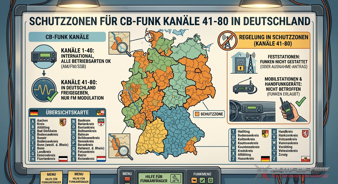 Die Funkkanäle 1 bis 40 sind ein international verwendeter Bereich für den CB-Funk. In Deutschland sind jedoch zusätzlich noch die Kanäle 41-80 für die CB-Funker freigegeben.