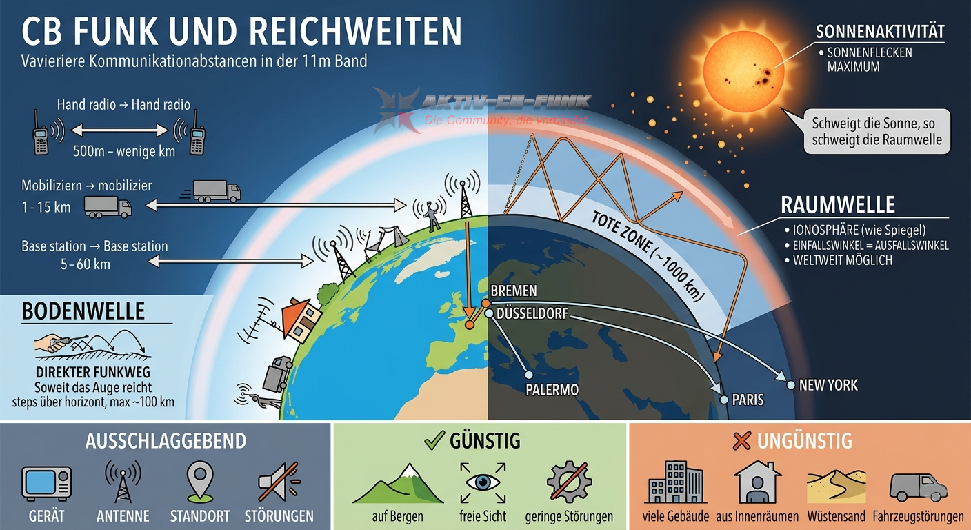 Welche Reichweiten sind im CB Funk 11m Band möglich?